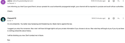 Flatzoid: Um, oh, and I want to point out yes, uh everybody in the flat earth community knows just what Jeran sends to females and expects them to send to him.